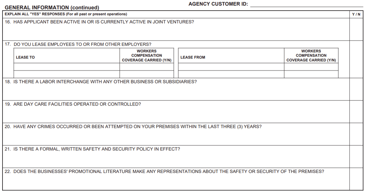 If you mark “Yes” to any question, explain in the Remarks section or attach the ACORD 101.
