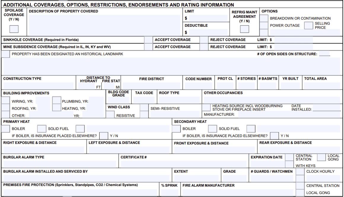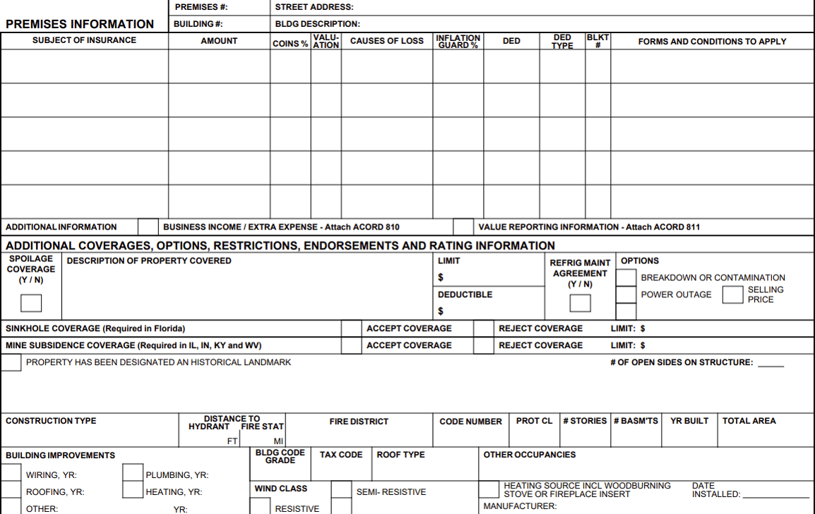💡Tip for Agents: The ACORD 140 is your property risk narrative—a complete and accurate form helps underwriters understand the business and quote faster. Missing or vague info = delays and weaker terms.